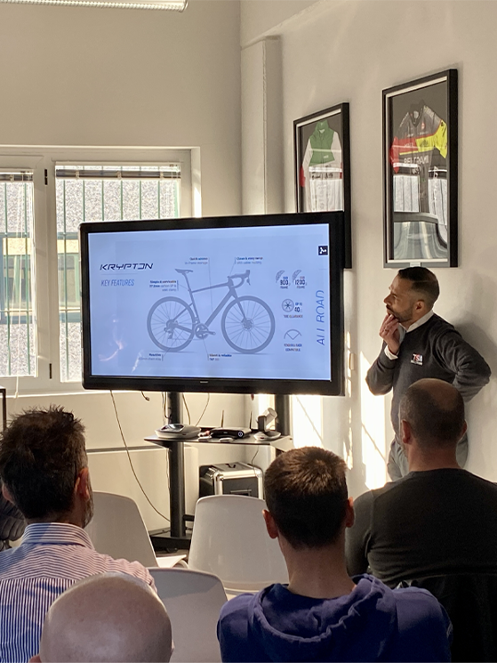 Le sessioni non erano semplici presentazioni. Erano conversazioni vere. I tecnici Corima hanno aperto la giornata raccontando come nascono le ruote in carbonio ad alte prestazioni e quali processi permettono di trasformare una struttura leggera in un prodotto efficace e affidabile. A seguire, Santa Madre ha portato al centro la nutrizione sportiva, trasformando la sala in un piccolo laboratorio fatto di strategie alimentari, casi reali, gel energetici e barrette. L’obiettivo era spiegare perché un dettaglio apparentemente minimo può cambiare la performance di un atleta…
