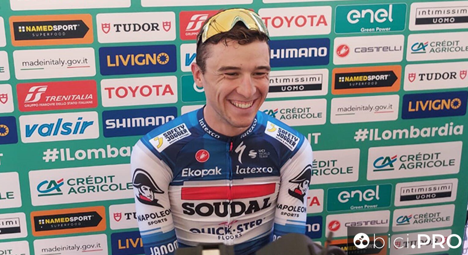 Il pubblico di Bergamo si gusta l’arrivo solitario del leader della UAE Emirates ed applaude la volata del valtellinese della Soudal-Quick Step, che anticipa il capitano della Jumbo-Visma e il resto dei migliori. Appena tagliato il traguardo Bagioli viene subito precettato per il cerimoniale delle premiazioni, ma si capisce subito che ha voglia di parlare. La prestazione del Lombardia è la normale conseguenza di una condizione ottimale arrivata (e concretizzata) in quest’ultima settimana. Una settimana movimentata per la sua formazione.