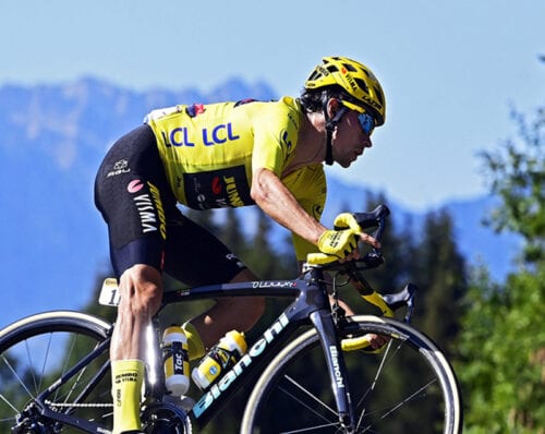 Stiamo parlando di Santini e Bianchi. Da una parte Santini, che forniva le divise alla Mercatone Uno (il team di Pantani), dall’altra Bianchi, che aveva messo a disposizione del fuoriclasse di Cesenatico il suo top di gamma, la Mega Pro.