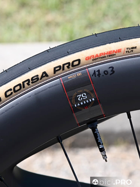 I corridori della corazzata olandese hanno utilizzato (e stanno utilizzando) ruote con profili diversi, ovviamente con valori ERD differenti tra loro, ma tutti con i nuovi tubeless Vittoria Corsa TLR. Le ruote Reserve hanno canali interni del cerchio diversificati: ad esempio le 34 hanno 23, le 37 hanno un canale largo 22 millimetri, le 53 hanno una canale da 25 e le 63 l’hanno di 24 millimetri.