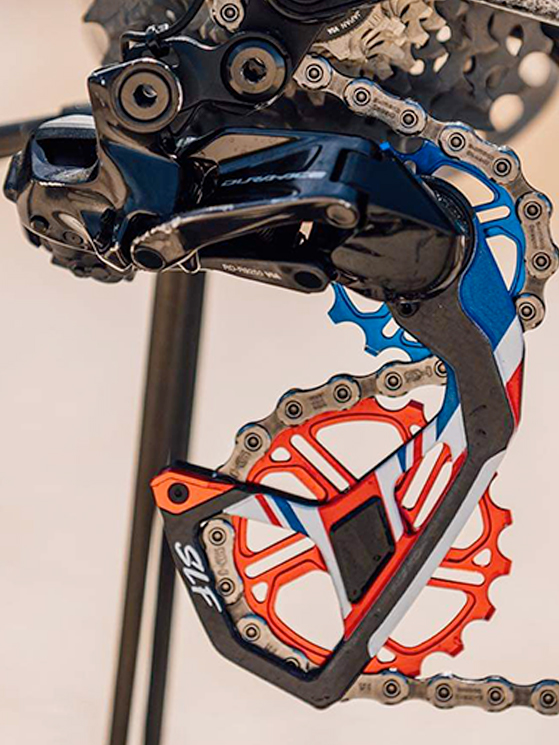 «SLF Motion non utilizza cuscinetti commerciali – ci ha detto Andrea Rovaris, responsabile di Bike Passion GmbH (distributore esclusivo di SLF Motion) a proposito del bilanciere usato dall’Astana – ma dietro specifiche proprie fa produrre delle sfere ceramiche e piste ceramiche ad elevato grado di durezza. Il tutto viene assemblato in sede, in Illinois. Passando invece alle gabbie, queste sono in fibra di carbonio stratificato, sviluppate per raggiungere degli elevati gradi di rigidità, difficilmente riscontrabili in altri prodotti di pari categoria. Resistenza, velocità nella cambiata e precisione.