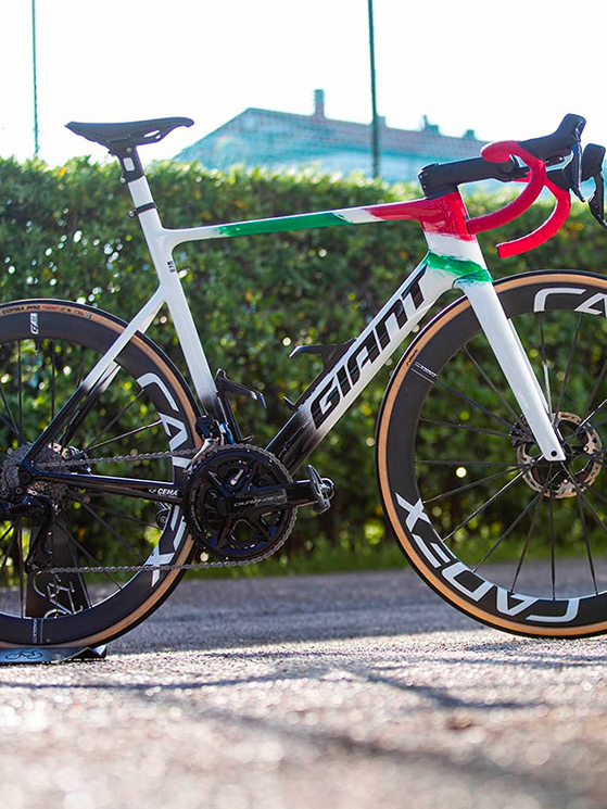 E’ l’ultima versione della bici che tutti i corridori stanno utilizzando in casa Jayco-AlUla. Rispetto alla Propel utilizzata dai colleghi, quella del Campione Italiano in carica colpisce per la livrea, fatta ad hoc per il corridore veneto in occasione del Giro d’Italia 2023.