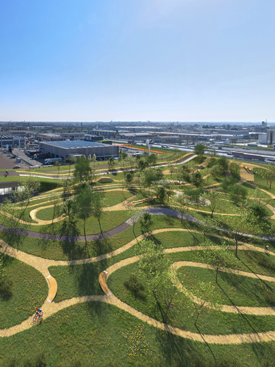 Comprenderà più di 4 chilometri tra percorsi strada e gravel, con sezioni che replicano strade iconiche del ciclismo come il pavé tipico della Parigi-Roubaix. Il Parco avrà inoltre percorsi mountain bike che includono sezioni con pietre, radici e rocce, salti alti fino a 1,35 metri, una jump line lunga 380 metri e curve con sponde. Ci saranno infine una pump track, realizzata secondo gli standard per ospitare gare UCI, un materasso per esercitarsi con i salti e un’area per fare numeri ed evoluzioni in bici.
