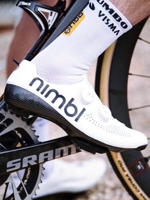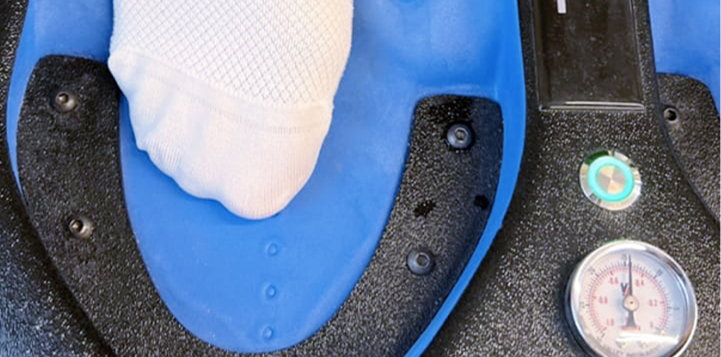 Dopo un’attenta valutazione che comprende visita biomeccanica podologica, videografia posturale, baropodometria statica, dinamica e soprattutto durante la pedalata reale con la bici del cliente, utilizzo solo due tecnologie, sempre su calco individuale del piede. Plantare in EVA medicale ad alta densità fresato CAD-CAM: lo scelgo per il 95 % dei casi. E’ rigido, leggerissimo, ha uno spessore minimo. L’altra soluzione è la stampa 3D in nylon caricato al carbonio. Quest’ultima è riservata a chi sviluppa potenze molto elevate o necessita di correzioni importanti. Il rivestimento superiore è sempre in EVA per evitare micro-movimenti e garantire comfort anche dopo centinaia di chilometri.