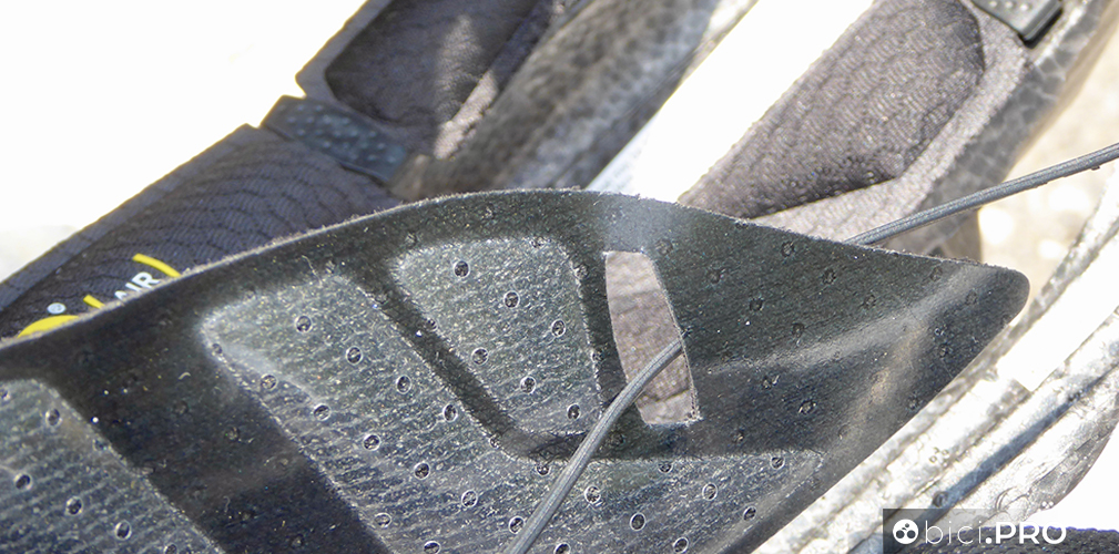 Unisce le fibbie morbide e impalpabili al moschettone di chiusura, ma c’è anche il rotore posteriore. E’ micrometrico e posizionato su una sorta di gabbia regolabile in altezza su due lati. La soluzione è ottimale, perché rende impercettibile il punto di chiusura, che non esegue pressioni.