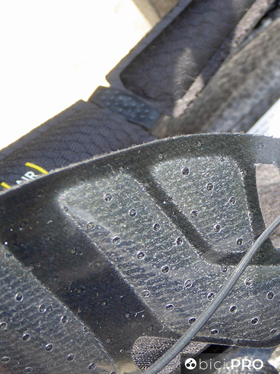 La gabbia posteriore regolabile in altezza su due punti è un bel vantaggio, perché aumenta ulteriormente il comfort e una qualità della calzata che è già di alto livello. E’ molto valida la soluzione dell’Optidock per il blocco degli occhiali, non è ingombrante e funziona bene, facendo si che le aste non si pieghino all’interno e puntino sulla testa.