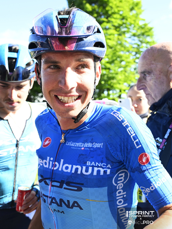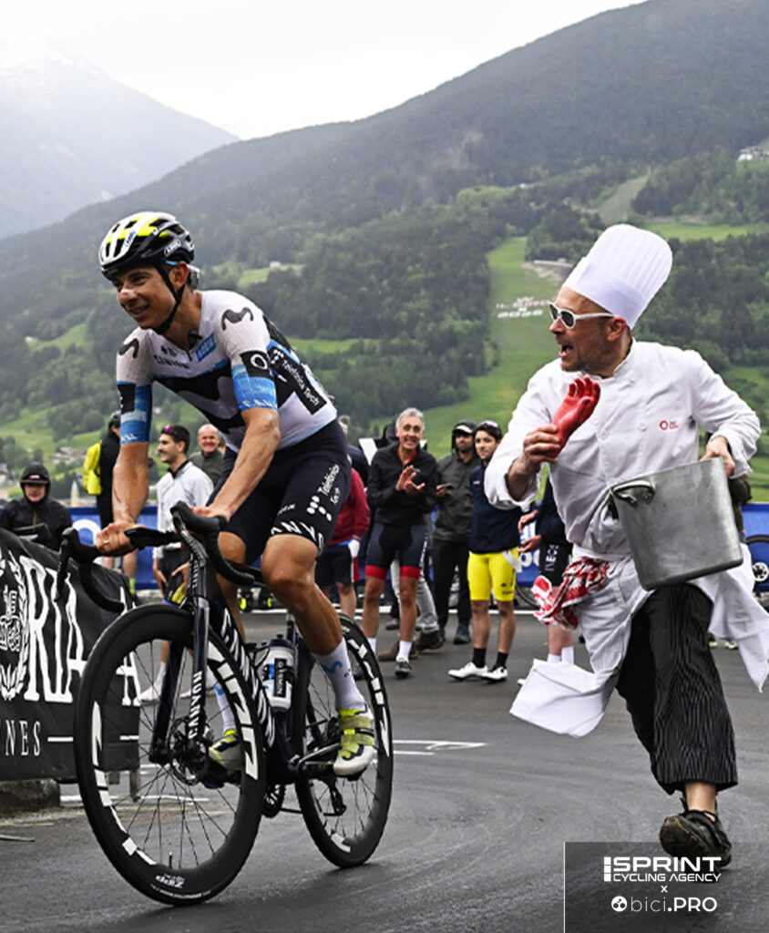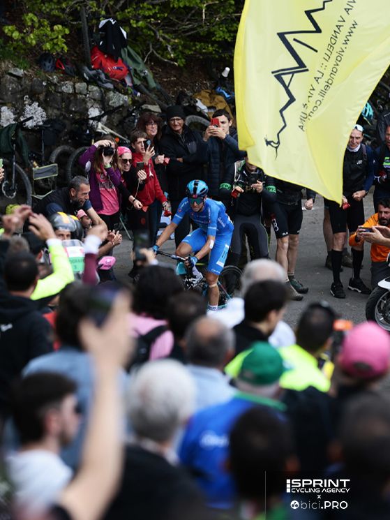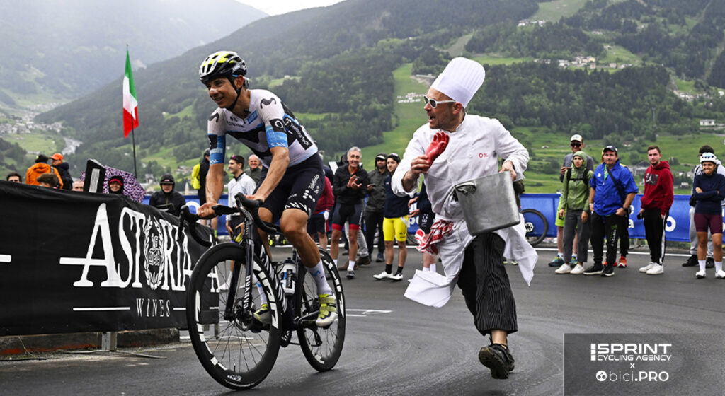 A Bormio il cielo è grigio. Del Toro è arrivato da svariati minuti, consolidando con la vittoria la maglia rosa che ieri a San Valentino di Brentonico è parsa traballare: nessuno può ancora immaginare ciò che accadrà sul Colle delle Finestre. Il Giro d’Italia si è lasciato alle spalle il Tonale e il Mortirolo, poi la salita delle Motte ha dato il colpo di grazia ai corridori più stanchi e fra questi c’è Davide Formolo. Il veronese ha lavorato per Einer Rubio, ottavo al traguardo a 16 secondi da Del Toro, poi si è staccato e ha raggiunto il traguardo, posto giusto all’imbocco della strada dello Stelvio. E nel momento in cui dovrebbe solo raggiungere il pullman per lasciare la bici e togliersi finalmente gli scarpini, dal pubblico salta fuori un signore anziano con i baffi che urla forte il suo nome.