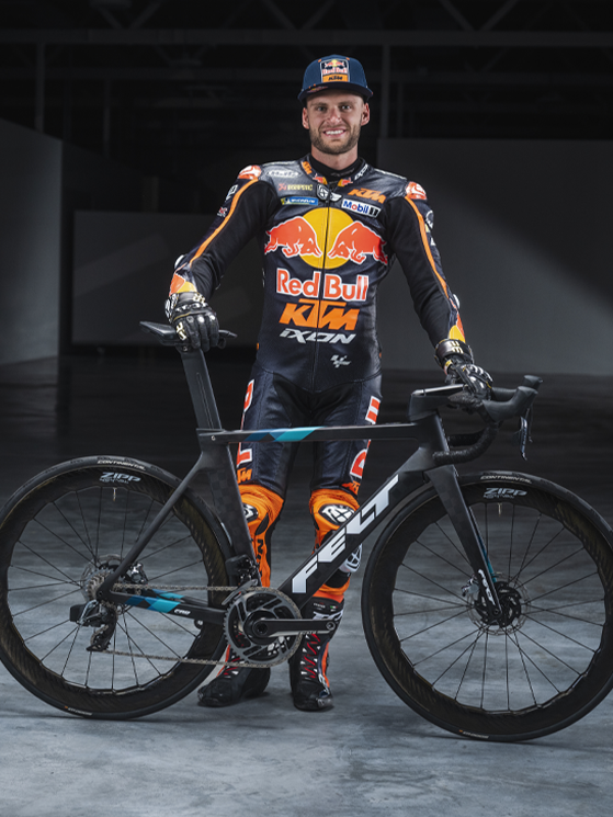 Da sempre il motto di Felt è “Felt is Fast” e sin dalla sua nascita l’azienda californiana ha fatto della ricerca della velocità un suo punto di forza. Oggi questa continua rincorsa si arricchisce di un nuovo capitolo grazie alla partnership con il team Red Bull KTM Factory Racing MotoGPTM. Nel 2023 i due piloti del team, il sudafricano Brad Binder e l’australiano Jack Miller, pedaleranno su bici da strada Felt. Un incontro quello fra bici e moto non nuovo, visto che sono davvero tanti i piloti del Motomondiale che vedono nella bicicletta un ottimo strumento di allenamento.