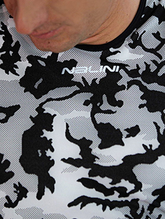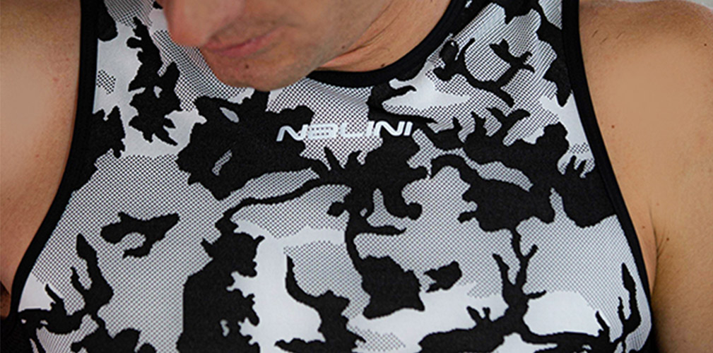 Per quanto riguarda la parte superiore Nalini ha creato la sotto maglia Camu Tank che si distingue per la colorazione camouflage. Uno dei punti chiave è nella zona ascellare, dove sono stati applicati degli inserti in rete per favorire la traspirazione. Inoltre, viene effettuato il trattamento Mantodry, che facilita e velocizza il trasporto dell’umidità prodotta verso l’esterno, anziché essere assorbita dal capo. Questo trattamento permette alla pelle di rimanere asciutta.