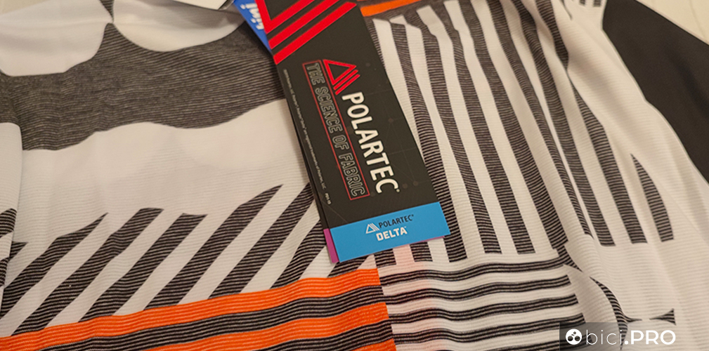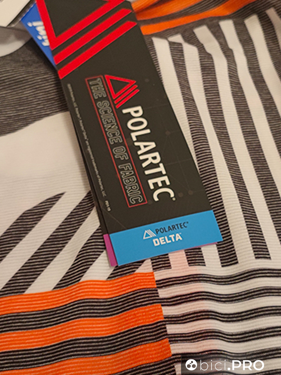 La maglia Outlast di Ekoi è la prima shirt sviluppata in modo specifico per il ciclismo che adotta la tecnologia Outlast. E’ stata sviluppata a braccetto con i corridori del Team Israel-Premier Tech e ha la peculiarità di adattarsi alle variazioni della temperatura. Ha un’elasticità enorme che si traduce anche in una ergonomia che fascia il torace e le braccia. Non presenta degli inserti in rete mesh, dettaglio non secondario che limita la presenza di cuciture e la possibilità di rotture. Davanti c’è un orlo fine e sottile, dietro c’è una banda elastica più alta e con inserti grippanti che non fanno salire la maglia.