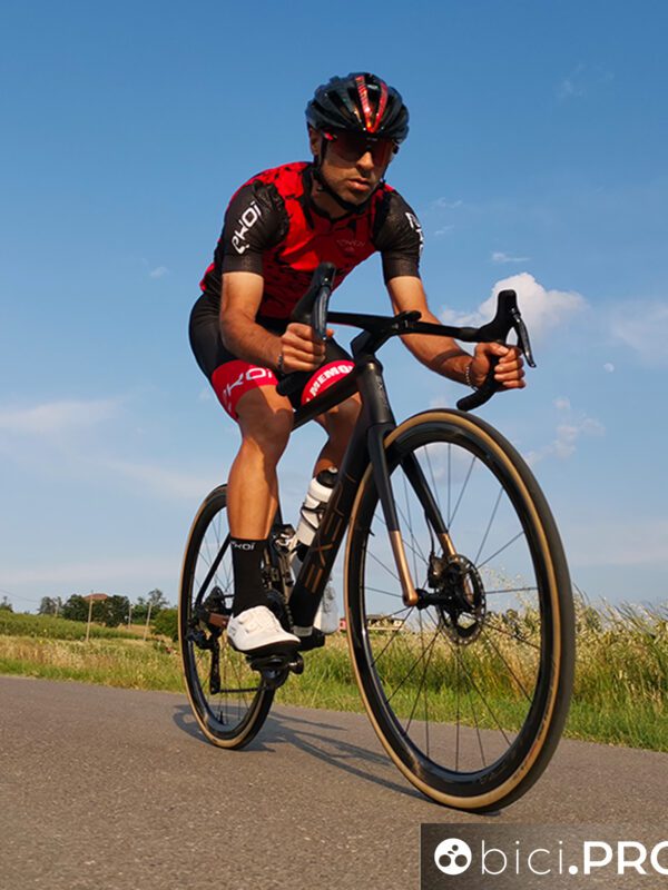 Anche le bretelle, la loro compattezza e il sostegno giocano un ruolo primario. Sono larghe e con pochissime cuciture. Si percepisce la bontà della costruzione una volta che si sale in bici e si assume la “posizione del ciclista”. Questa salopette di Ekoi può fare la differenza quando si percorrono tanti chilometri, quando si è capaci di sfruttare la posizione aerodinamica, quando si fanno salite lunghe.