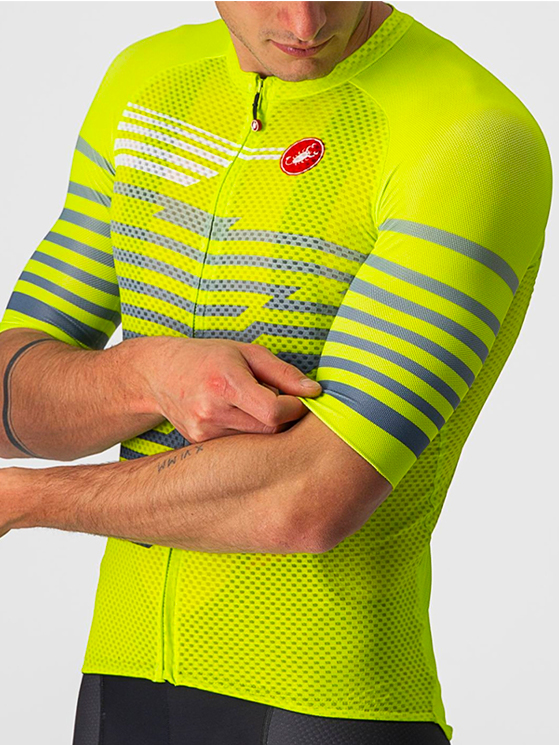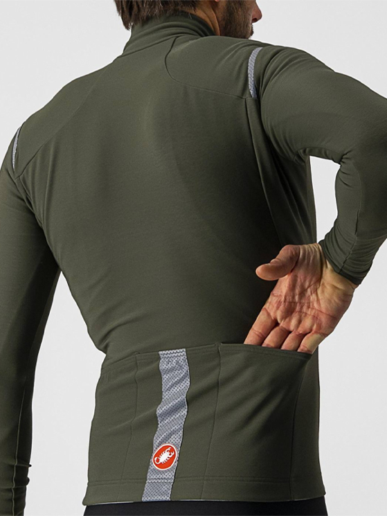 Castelli e Polartec sono voluti ripartire da zero per creare questo capo d’abbigliamento, rivalutando le regole per offrire ai ciclisti qualcosa di unico. Alla base c’è la ricerca della performance, che passa dalla tecnica ma anche dal comfort. Pedalare ad alti livelli porta il nostro fisico a vivere in condizioni stressanti. La traspirabilità del tessuto AirCore permette al ciclista di pedalare ad alta intensità senza avere la necessità di aprire la zip frontale per mantenere costante la temperatura corporea.