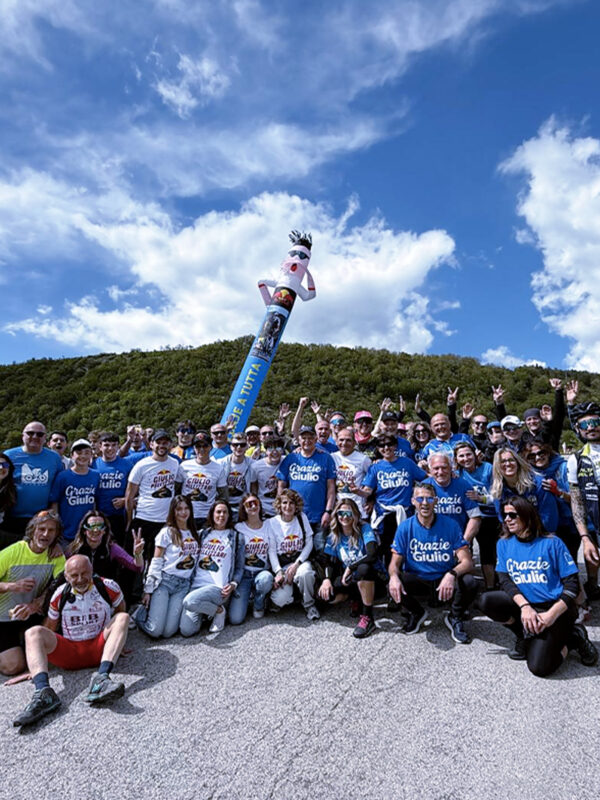 Ieri su Sassotetto erano in tanti. Gli amici del paese, uniti dalla passione per la bici e l’amore per Pellizzari che hanno visto crescere. Il gonfiabile sì, gli striscioni anche… ma pure carne alla brace e vino.