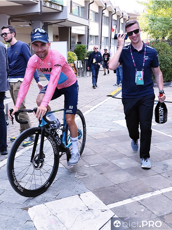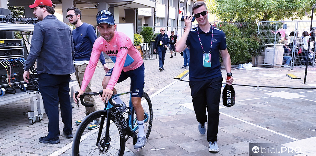 La sua Camerino distava appena nove chilometri dall’arrivo. E’ qui che si allena ed è qui che ha iniziato a inseguire il sogno di diventare corridore. E oggi eccolo (di nuovo) al Giro d’Italia al fianco di un capitano importante, forse il più importante di tutta la corsa rosa.