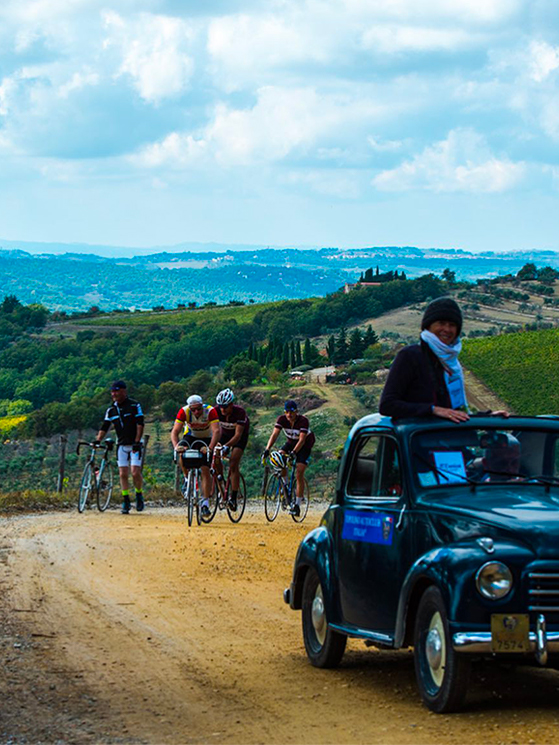 «Il primo step – spiega Brocci – fu una fase personale, in un periodo della mia vita dove potevo permettermi di sperimentare. Nel mio paese Gaiole in Chianti. Al tempo era una corsa in ottobre, che si preparava in due mesi. Con regole nostre, non competitive e con un’organizzazione semplice. La direttrice dell’Apt di Siena, Fiorenza Guerranti, aprì le porte del territorio che promuoveva e decidemmo di far passare parte degli itinerari anche per le strade intorno a Siena.