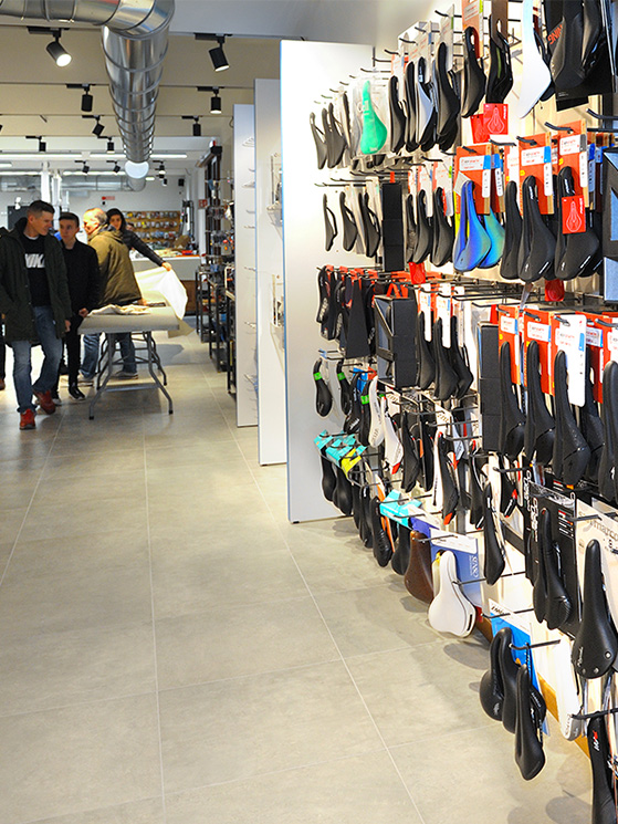 Per i marchi che abbiamo e il target dei prodotti, abbiamo fatto una selezione in partenza. Per noi la bici da corsa parte da 2.700 euro e la mountain bike, che ha più variabili, dai 600. Non abbiamo l’economico a tutti i costi. Chi viene qua sa di dover spendere e ha bisogno di tutto, dalla bici all’abbigliamento. E avendo soltanto Castelli e Assos, anche per vestirsi c’è da investire.