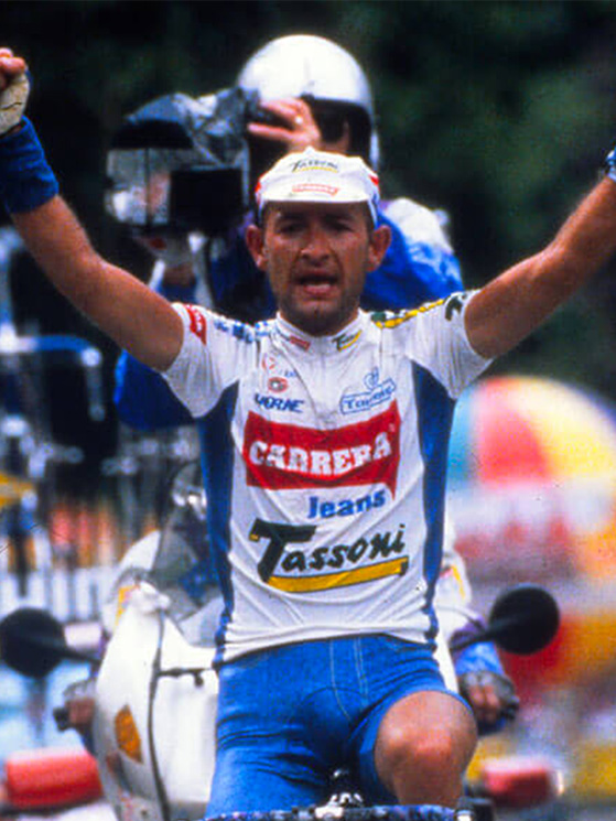 Claudio Mantovani, titolare di Nalini, premia Attilio Viviani al Memorial Mantovani 2019 Marco Pantani e la Carrera, qui nel 1995: un altro orgoglio Nalini Indurain e la Banesto vestivano Nalini: qui la dedica sulla rosa (foto Facebook/Nalini)