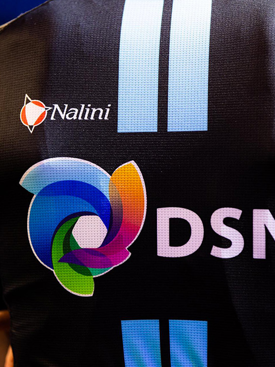 (foto Facebook/Nalini) Eccola maglia del tem femminile: la differenza è nel logo UCI (foto Facebook/Nalini) Il Team DSM è entrato nella scuderia Nalini alla fine del 2021 (foto Facebook/Nalini) La disposizione dei marchi è una delle fasi di maggior studio (foto Facebook/Nalini)