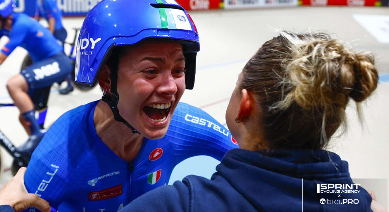 Il giorno dopo essere tornata dal mondiale di Santiago del Cile, in cui ha conquistato l’oro nel quartetto, Martina Alzini ha preparato un’altra valigia ed è partita per Barcellona. E’ qui che la raggiungiamo, in un momento di pausa in cui parlare della fresca vittoria è un bel modo per farsi qualche risata. C’era anche lei nel 2022 a Parigi, quando per la prima volta nella loro storia le azzurre conquistarono il titolo dell’inseguimento a squadre. Quella volta uscivano dal sesto posto alle Olimpiadi di Tokyo, questa volta dal quarto di Parigi, che in proporzione ha bruciato molto di più. Non è stato per caso infatti che le italiane si siano guardate in faccia e a Santiago del Cile abbiano voluto esserci a tutti i costi. C’era una delusione da lavare con la vittoria e così è stato.