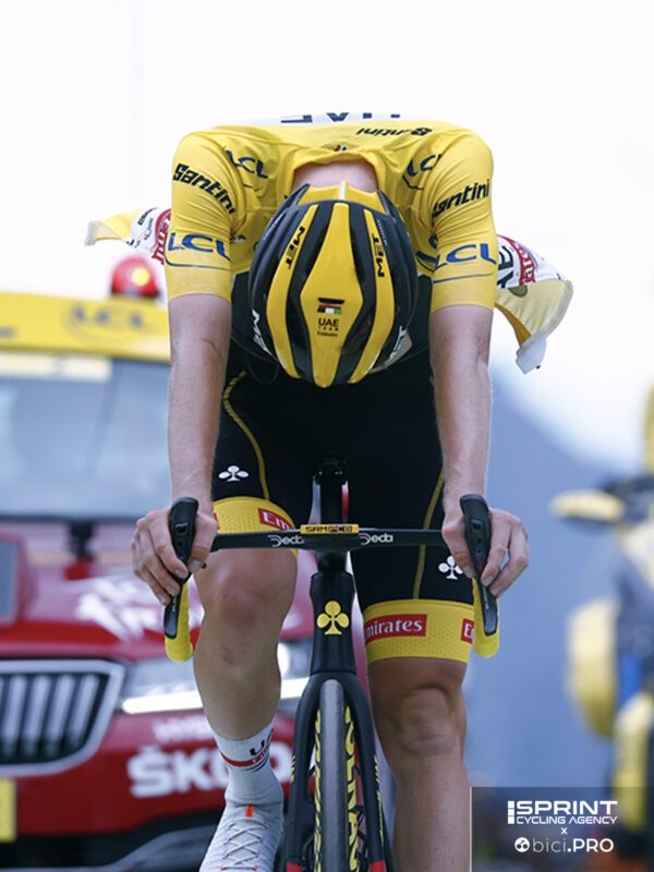 Manca così poco all’arrivo con Majka che tira e Pogacar che gestisce, da pensare che anche oggi attaccheranno domani. Invece Vingegaard parte ancora e questa volta alle sue spalle qualcosa si rompe. I trenta gradi e la quota si fanno sentire. Pogacar di colpo abbassa la lampo sul torace bianco e la sua pedalata perde consistenza.