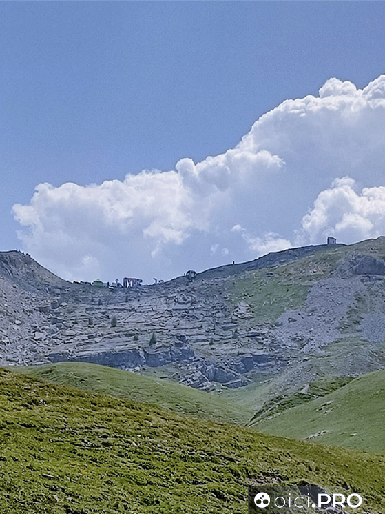 Lo spettacolo selvaggio del Fauniera. ExtraGiro è riuscita a portarci per la prima volta l’arrivo di una gara (al centro in alto)
