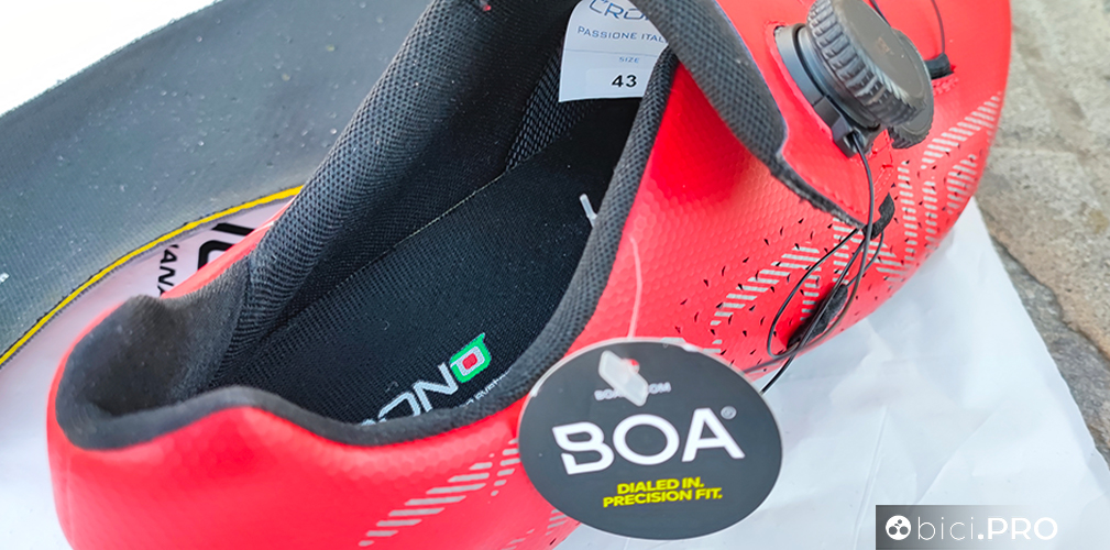 La scarpa da bici non deve mai stringere e non picchiare in punta. Deve circolare bene il sangue. Le chiusure Boa sono un vantaggio anche nei termini delle microregolazioni e devono essere sfruttate al meglio anche in questo senso. Ci deve essere un margine di comodità e un giusto compromesso tra libertà del piede e aderenza.
