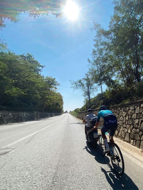 Penso di sì. Diventi più visibile anche nei casi in cui le macchine escono dagli stop e riescono a vederti meglio. Ormai il Varia posteriore (sistema di Garmin che segnala l’avvicinamento di autoveicoli alle spalle, ndr) lo utilizzano in tanti e c’è tanta differenza, perché inspiegabilmente vedendo la luce, le auto ti considerano come un veicolo. Io cerco di uscire quando trovo un compagno per pedalare, che di solito è un ex professionista o qualcuno che sa come stare in strada. E poi vivo in Franciacorta e non c’è tanto traffico, ma è un fatto che quando hai la luce, ti notano di più. Quando hai la luce, molte meno persone ti fanno il pelo. Non capisco perché accada e non capisco perché tanti devono passarti così vicino, pur avendo lo spazio per superare.