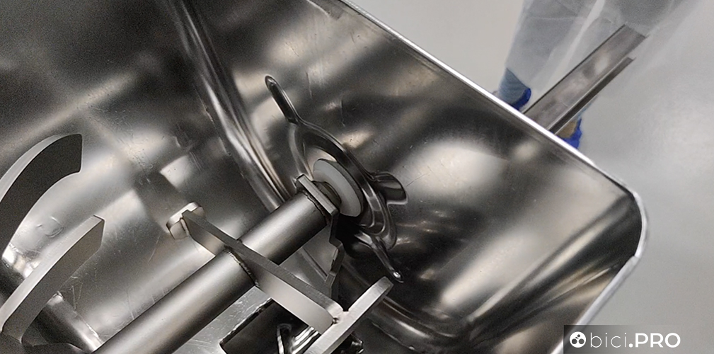 Il laboratorio Dinamo è il risultato di una collaborazione tra uomo e macchina. Guardiamo ad esempio la produzione delle barrette. Per garantire il mantenimento delle proprietà benefiche delle vitamine e l’integrità degli ingredienti, Dinamo ha scelto di evitare un’eccessiva macinazione. Per questo sono state apportate modifiche a un comune tritacarne che amalgama la materia prima a bassa velocità, senza surriscaldarla. Estrusa sotto forma di una lunga barra, viene tagliata manualmente e pesata dall’operatore. Le barrette sono così pronte al confezionamento, senza necessità di cottura. Questa porterebbe all’inattivazione di molte vitamine essenziali per il benessere e la performance, come quelle del gruppo B e la vitamina C.