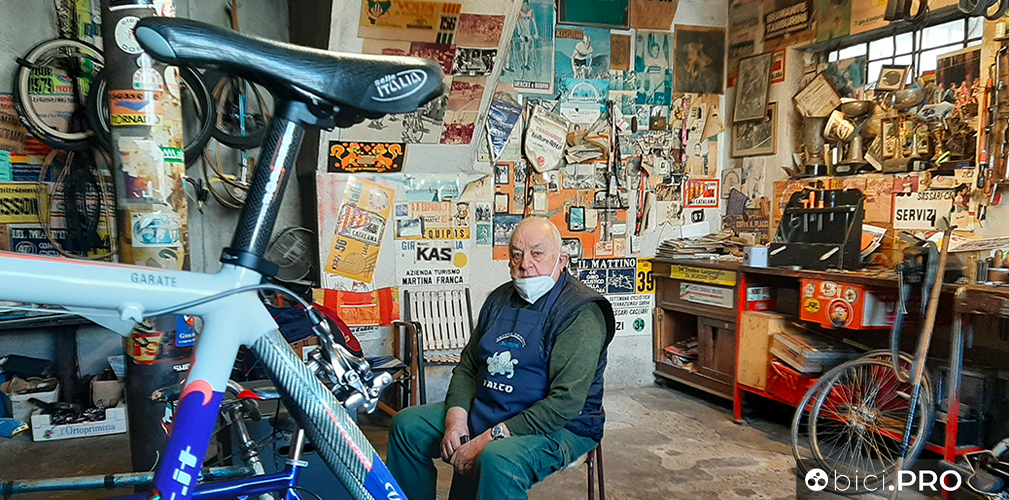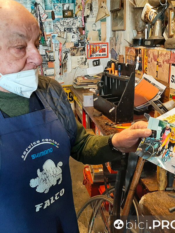 Il tono della voce diventa flebile e lo sguardo si abbassa. Ogni ricordo che il Falco ci racconta sul Pirata assume un’atmosfera propria e assordante. Dino Falconi è stato il meccanico della Mercatone Uno dagli inizi, fino all’ultima stagione di Marco Pantani. Ancora oggi all’età di 85 anni si reca nella propria officina per riparare le bici di clienti fidati e per aprire le porte agli appassionati che bussano. Tra questi ci siamo anche noi.