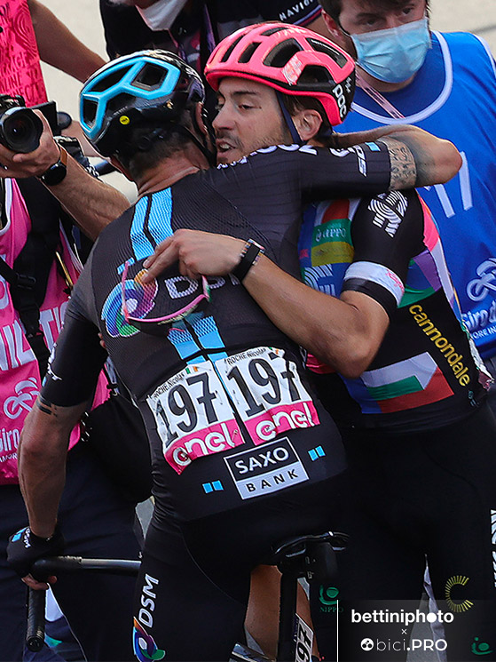 «L’ho voluto questo Giro d’Italia – racconta – volevo tornare nella mia terra. Volevo vedere a che punto ero con la mia maturità. Il ciclismo ci insegna più a perdere che a vincere e per questo sono contento di aver vinto al Giro. Durante la tappa ero concentratissimo e molto determinato dentro di me. Avevo molti amici in quel gruppo, uno è Nico Roche, ma non ho parlato con nessuno. Volevo vincere. Anche se dopo l’arrivo, proprio lui ha idealmente dismesso i panni del Team Dsm ed è venuto ad abbracciarmi. E’ un bravissimo ragazzo, anche lui ha vissuto i suoi momenti difficili. Abbiamo condiviso i giorni sul Teide prima del Giro e quel tempo passato non si dimentica dopo una corsa».