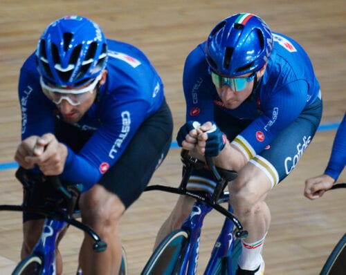 Siamo partiti con 10 ragazzi e poi due hanno smesso, quindi siamo in otto. Quello più in vista è Francesco Matteoli, un primo anno. Lui è nel giro della nazionale della pista. Quest’inverno ci ha dato un bel da fare con l’avanti e indietro fra Montecatini e Montichiari. Poi un giorno lo hanno investito. Si è rotto la clavicola ed è fermo. Per fortuna si trattava di una frattura composta e i tempi di recupero sono brevi. E ancora, ne abbiamo un altro con la mononucleosi, uno che è caduto e si è fatto male ad un gomito.