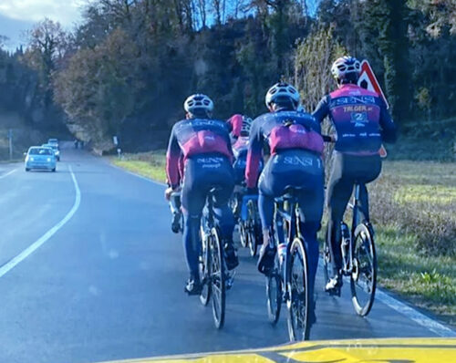 I giorni di Federico Savino scorrono tra allenamenti, recupero e qualche risata insieme ai compagni di squadra nel clima ancora estivo del Belgio. Il toscano si trova nell’appartamento messo a disposizione dalla Soudal-QuickStep insieme ad altri quattro compagni del devo team: Pesenti, Favero e i due spagnoli Munoz e Zafra. Dopo aver corso la Muur Classic Geraardsbergen i cinque atleti saranno al via anche della Grote Prijs Stad Halle, nella quale Savino partirà con il numero uno visto il successo del 2024.