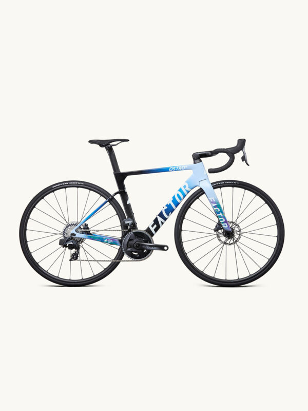 La bici è la top di gamma di Factor e si presenta con i colori utilizzati nella campagna benefica. Oltre al colorama classico della squadra, la forcella e il carro posteriore della Ostro presentano le fantasie scelte per rappresentare “Field of Dreams”. Un modo alternativo per comunicare l’impegno del team per il sociale e per i paesi in via di sviluppo che si stanno avvicinando al mondo delle due ruote come il Rwanda.