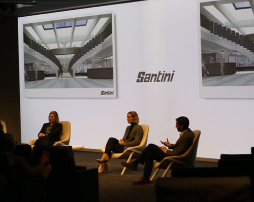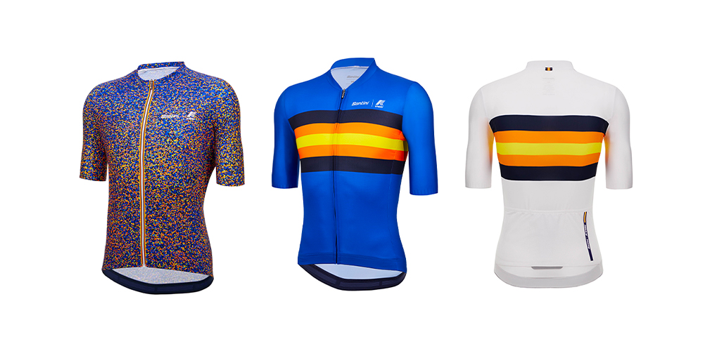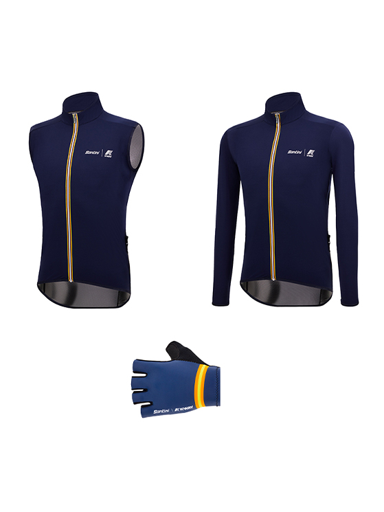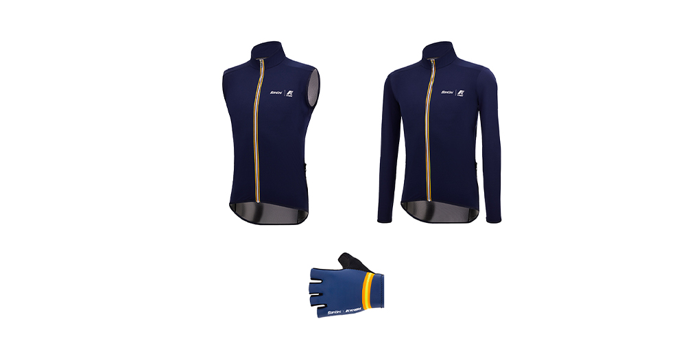La collezione Santini K-Way include maglie uomo e donna, con pantaloncini abbinati, uno smanicato e una giacca per la pioggia, oltre ad accessori come guantini da ciclismo. Una sinergia nata nel 2022 con la giacca che ha saputo incontrare le esigenze di chi usa la bici per fare attività fisica ma anche per muoversi in città o per raggiungere il posto di lavoro.