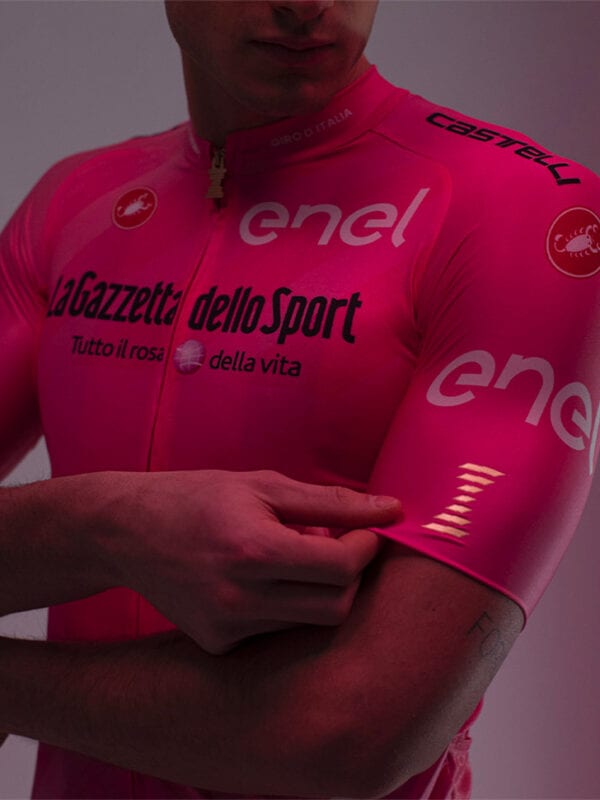 Le sfumature di rosa sono davvero parecchie. «Le differenze tra i capi della collezione dipendono dal loro utilizzo. La maglia Premiazione, per esempio, ha una vestibilità più abbondante, per essere indossata quando l’atleta è sul podio sopra la maglia della propria squadra. La maglia Leader è pensata sia nei tagli, distribuzione dei tessuti e fit, per essere performante. Il body per le cronometro che noi chiamiamo Bodypaint 4.0 TT Suit sintetizza tutto il nostro know-how in fatto di performance e aerodinamicità. Mentre nelle prime due maglie citate i tessuti sono gli stessi, nel Bodypaint abbiamo privilegiato tessuti con modulo elastico maggiore per essere più aderente possibile e super lisci».