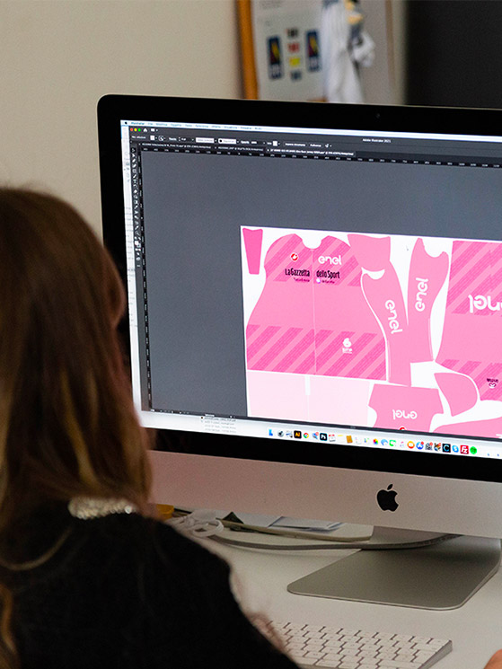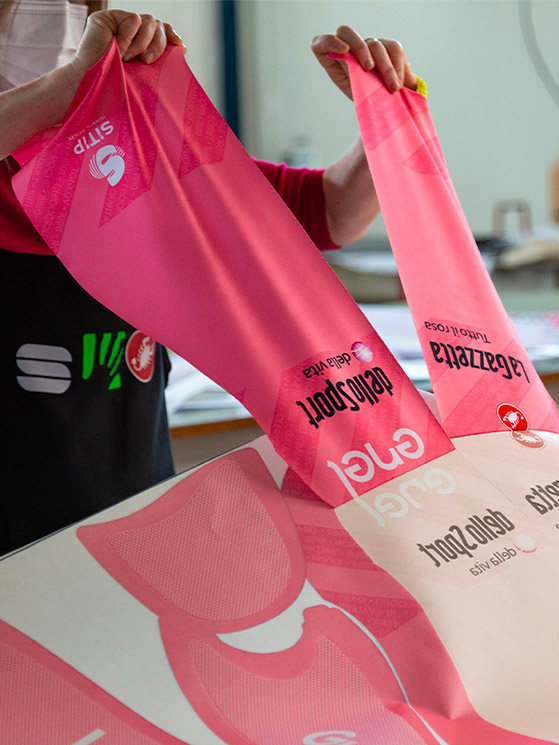 I bozzetti vengono visionati internamente e poi ricevono l’approvazione di Rcs. A questo punto l’ultima approvazione è quella degli sponsor delle singole maglie leader. E la Maglia Rosa comincia così a prendere forma.