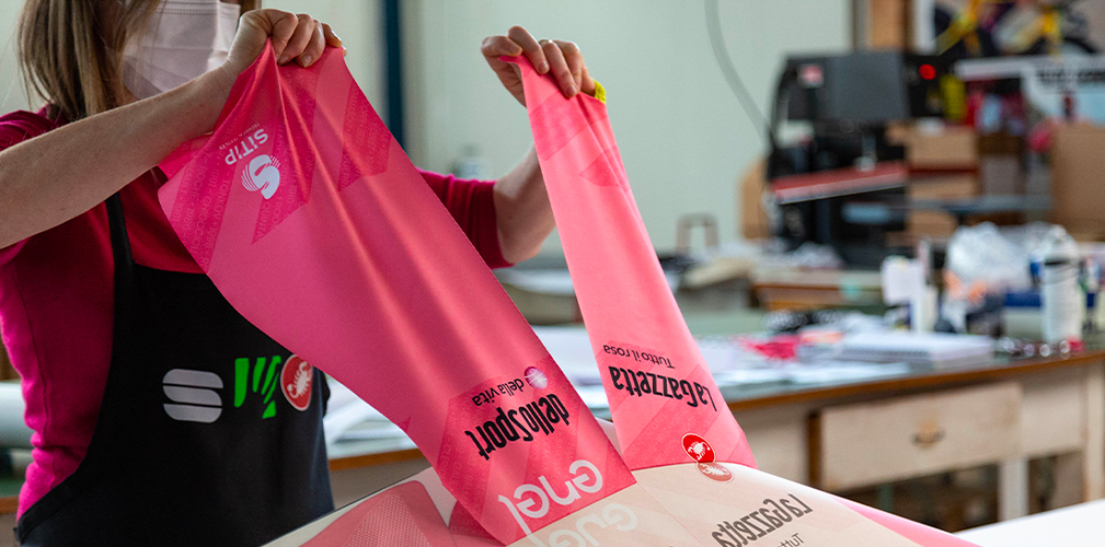 «Questa è la parte è più bella – racconta Laura – perché la Maglia Rosa viene letteralmente plasmata sotto i miei occhi. Nonostante sia già il quarto anno che la facciamo, è sempre una grande emozione quando la confezioniamo nel nostro atelier interno. Per Rcs è prevista un’intera collezione di 8 prodotti che viene messa a disposizione dei detentori delle maglie di leader. Li vestiamo per tutte le condizioni atmosferiche o di gara. Ci sono le nostre famose Perfetto e Perfetto Long Sleeve. Il gilet Vest antivento. La maglia Premiazione e il body Crono, fino ai manicotti e, dall’anno scorso, anche la mascherina per la premiazione. In totale, forniamo a Rcs circa un migliaio di capi della collezione, per coprire il fabbisogno di tutta la durata del Giro».
