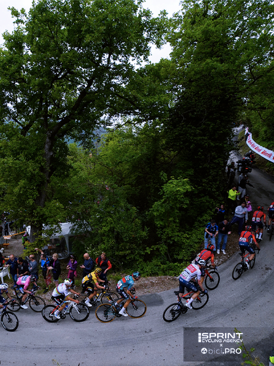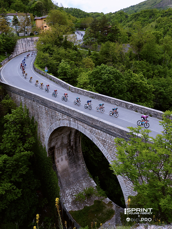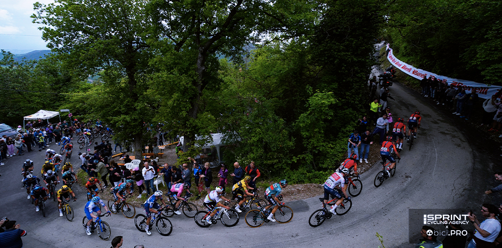 Andiamoli a sviscerare i temi di questa ottava tappa. Una frazione bellissima, ancora nel cuore di quella spina dorsale d’Italia che è l’Appennino. Per due ore e passa la fuga non prende quota. La media è altissima e sembra di rivivere le fasi iniziali della quarta frazione, quella di Lago Laceno.