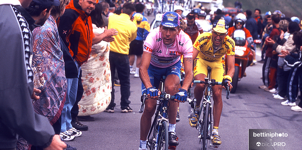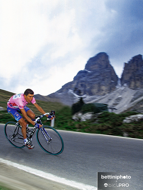 La sera prima, sotto ai pini di San Donà con il profumo di bagnato, i meccanici della Mercatone Uno preparavano le bici Carrera della squadra. Passandoci davanti con Ilario Biondi ci eravamo trovati a pensare quanto fosse strano non fermarsi dal Panta alla vigilia di una tappa così dura. Ma la classifica lo vedeva 14° a quasi cinque minuti e in quella sera così buia c’erano altre voci da sentire. Era tardi, in ogni caso, e Marco era di certo già in camera con la sua bici gialla.