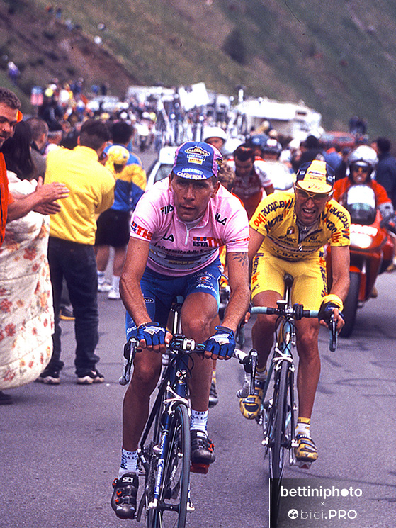 «Io il Giro l’ho perso sull’Izoard, il giorno prima. Se non c’era Pantani, Garzelli finiva a 2 minuti, invece è arrivato alla crono con 25″. Marco quel giorno fece un capolavoro e soprattutto lo aiutò a tenere i nervi saldi. In certi casi, più delle gambe fa il panico. La squadra serve a quello. Ma lo stesso non mi sarei mai aspettato di crollare così. La mattina stavo bene. Feci la ricognizione. Poi la gamba diventò di legno. Mi sbloccai un po’ dopo il Monginevro, ma pedalavo sapendo che stavo perdendo. Fu abbastanza deprimente».