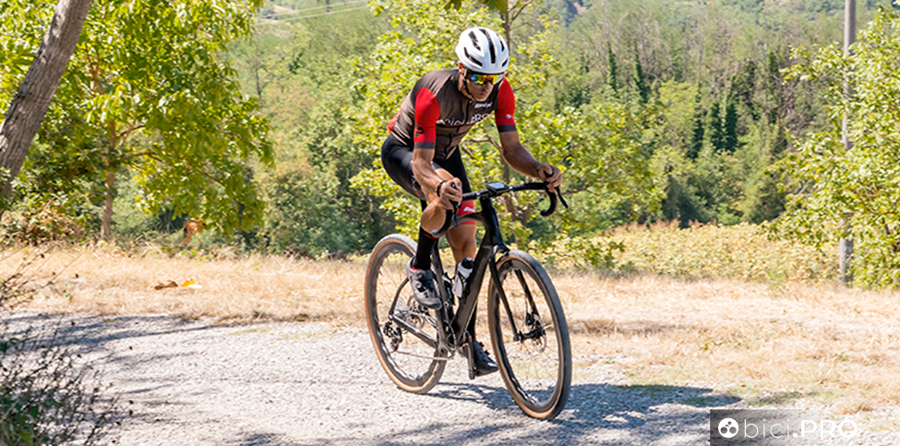 La Pinarello Grevil F segue una filosofia che accomuna tutte le biciclette dell’azienda veneta, ovvero il piacere di sviluppare dei mezzi race oriented. E’ ovvio che la nuova Grevil deve essere contestualizzata in un ambiente gravel, ma comunque non è un compromesso e il DNA corsaiolo emerge in diverse situazioni e per più volte durante l’uscita. E’ pur vero che in ambito off-road il setting del mezzo ricopre un ruolo fondamentale, nell’ottica di sfruttare a pieno le potenzialità della bicicletta.