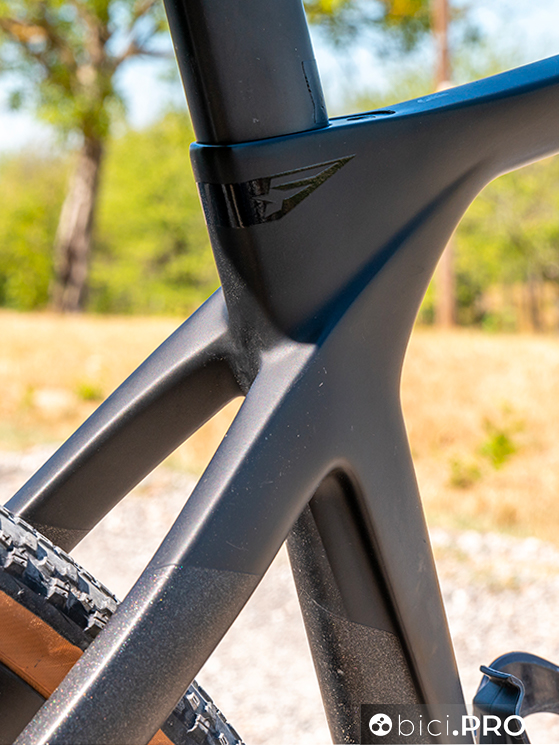 Posizione ben centrata sul piantone (foto Matteo Malaspina) Orizzontale curvo e svasatura sullo sterzo (foto Matteo Malaspina) Il fodero drive ribassato e curvo (foto Matteo Malaspina) I perni passanti integrano un estrattore (foto Matteo Malaspina) La scatola del movimento centrale con le calotte esterne (foto Matteo Malaspina) Anche l’impostazione geometrica è da gara (foto Matteo Malaspina)