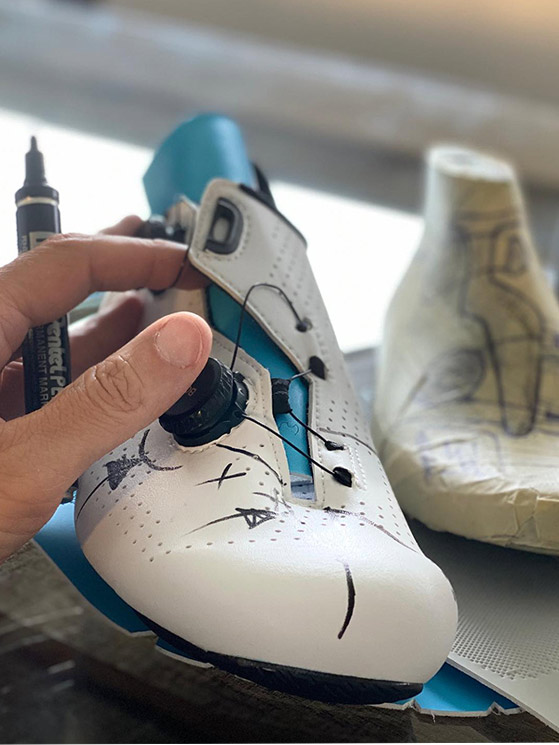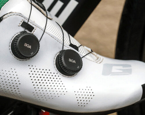Per Gaerne avere una serie di corridori di alto livello e dedicare loro un’attenzione particolare è un vantaggio in termini di sviluppo e messa a punto dei prodotti. «Ho usato anche la versione da mountain bike quest’inverno e ho dato anche qualche feedback. Avere una squadra significa ricevere decine di riscontri – e poi continua – siamo in 27 e ogni corridore potrebbe raccontare la sua versione della stessa scarpa, perché tutti abbiamo forme diverse e spingiamo sul pedale in modo diverso. Fra i ritocchi più ricorrenti, ma non è il mio caso, c’è la sagomatura del collo, perché magari qualcuno ha il malleolo più basso. Oppure la forma nella zona del metacarpo».