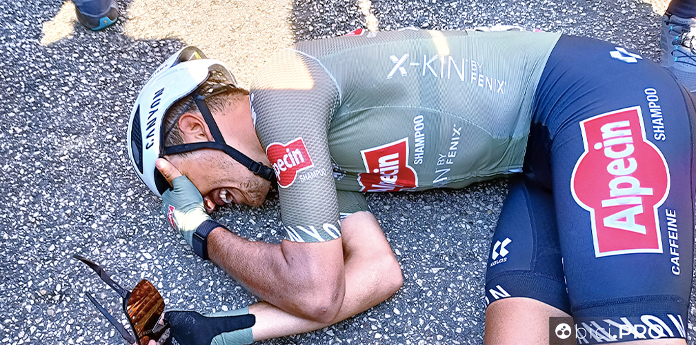 Rota sembra messo alla grande, a ruota di Stefano. Deve “solo” saltarlo. Il corridore della Jumbo-Visma invece è out.