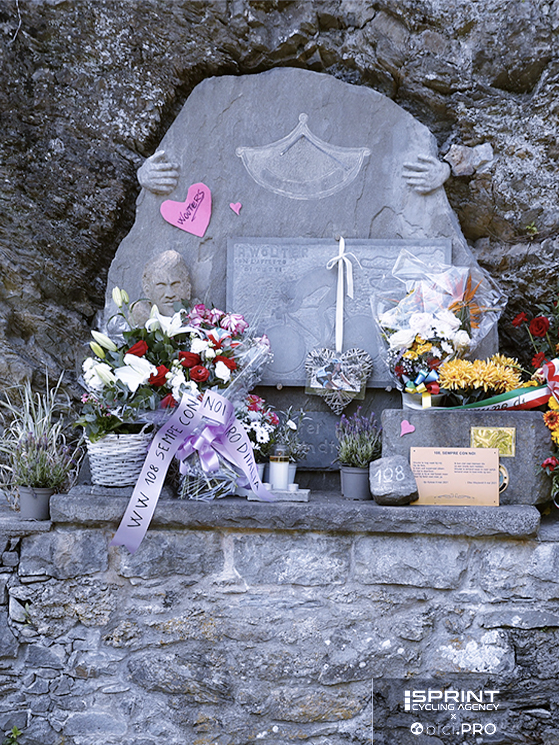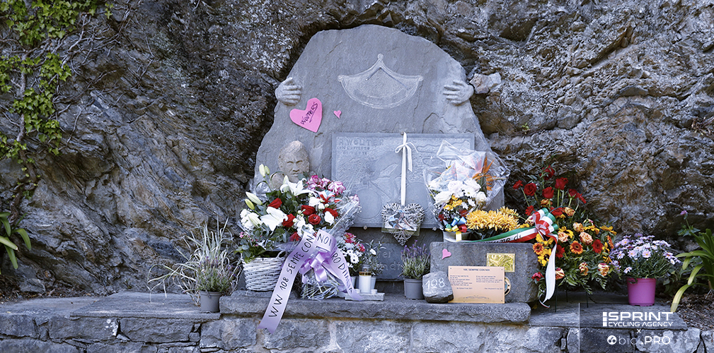 Nella discesa del Bocco si è passati davanti alla stele che ricorda Wouter Weylandt, scomparso qui nel maggio 2011