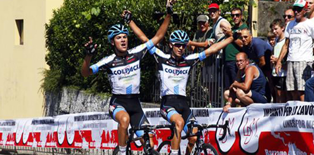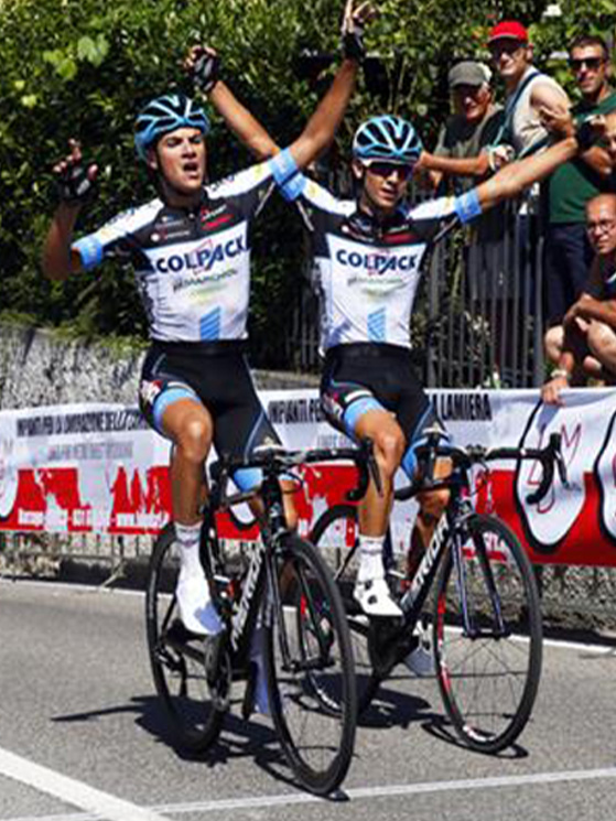 Luglio 2018, doppietta Colpack a Barzago con Oldani davanti a Bagioli. Oldani non vinceva da allora (foto FCI/Soncini)