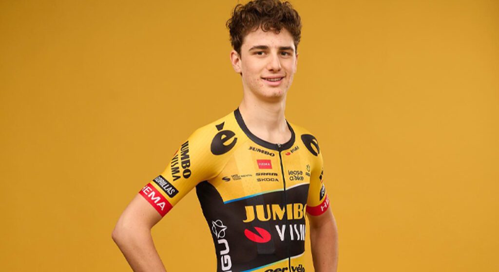 Alla partenza della Granfondo del Muretto di Alassio, una delle classiche del calendario d’inizio stagione per la mtb, c’era una maglia gialla e nera, inconfondibile. La scritta Jumbo-Visma, quella che Van Aert, Roglic e Vingegaard stanno portando trionfante sotto una marea di traguardi del WorldTour. A indossarla con orgoglio, Pietro Mattio, uno dei due giovani talenti (l’altro è Dario Igor Belletta) che lo squadrone olandese ha precettato lo scorso anno inserendoli nel proprio Development Team.