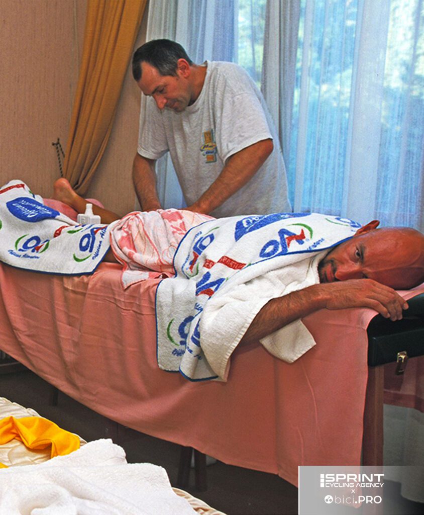 Le interviste ai massaggi sono sempre state fonte di pezzi stupendi: qui con Pantani