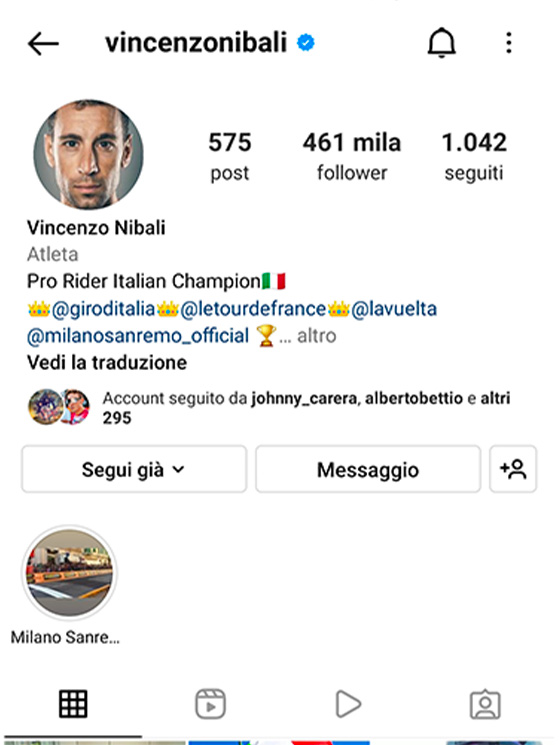Nibali è a quota 461 mila. Di recente si è buttato su Twitch assieme a Lello Ferrara e Pozzovivo