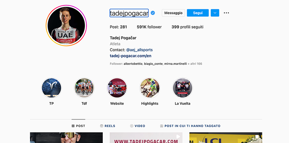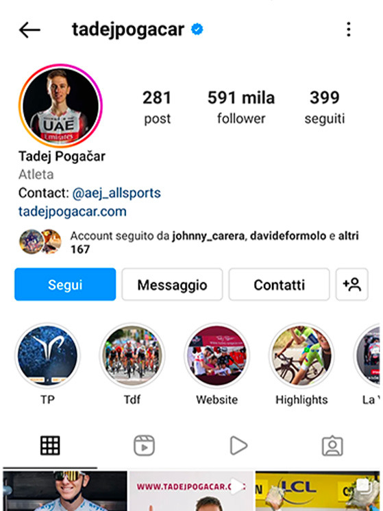 Pogacar è un ragazzo schivo, ha 591 mila follower , ma ben sotto le sue vittorie